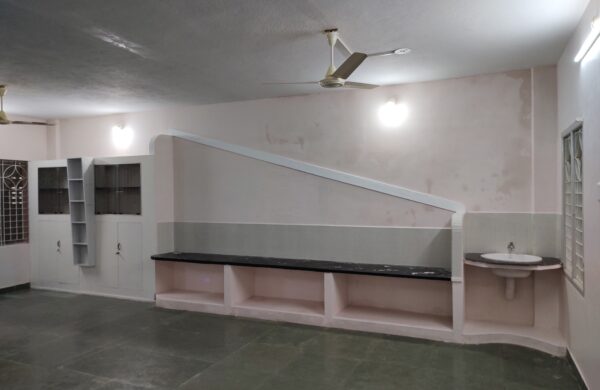 This project involved transforming an existing facility through structural modification, interior redesign, and functional space upgrades. The work included demolition of selected walls, creating new openings, reworking the layout, and integrating modern finishes. Custom kitchen counters, shelving units, tiled surfaces, and work platforms were constructed to improve utility and aesthetics. Electrical upgrades, new ventilation systems, and fresh plastering and flooring were also executed. The finished interior showcases a mix of patterned tiles, granite/tandoor worktops, planned storage units, and ample natural lighting. The renovation successfully merged functionality with visual appeal while working within the constraints of an active building.